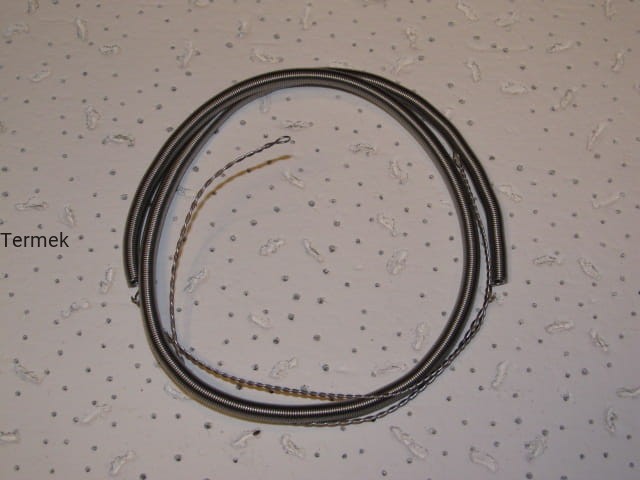 SPIRALA GRZEJNA KANTHAL 1400 W 230 V średnica zewn. 4,6 mm, śr. drutu 0,7 mm, dł. końcówek 15 cm, obciążenie 5,9 W/cm2. Przeznaczenie - do urządzęń krytych